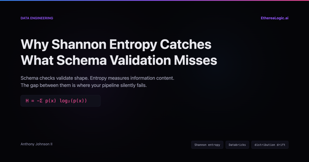 Anthony Johnson II is a Databricks Solutions Architect and the creator of the Enterprise Data Trust portfolio. He writes about data quality, distribution drift, and the engineering patterns that make data trustworthy at scale.